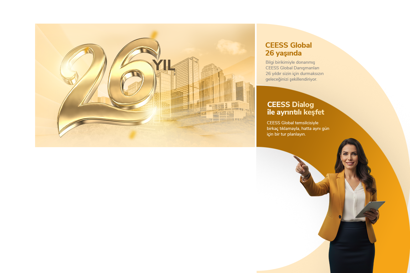 Emlak dünyasında bilgi birikimiyle donanmış CEESS Global uzman danışmanları, 26 yıldır sizin için durmaksızın geleceğinizi şekillendiriyor.