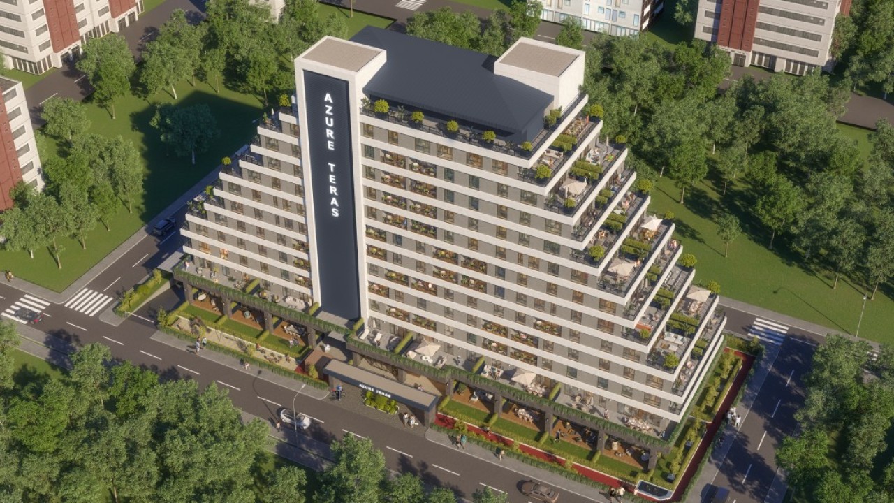AZURE TERAS, İstanbul'un eşsiz ve dinamik şehir hayatının genel yer alanı Kağıthane'de, Türkaz Holding güvencesiyle hayata geçirilebilen prestijli bir konut projesidir. 22.615 m² toplam inşaat alanına sahip proje, modern mimarisi ve kaliteli tekniklerle tasarlanmış 1+1'den 3+1'e kadar geniş daire seçenekleri sunuyor.